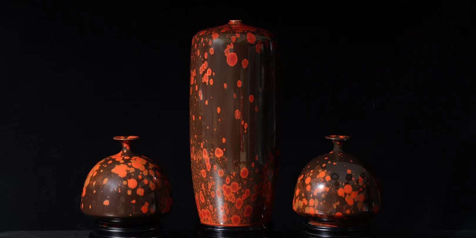 “铁系窑变釉艺术陶瓷项目”参加福建省第十九届海创会 以 “坚持创新发展,全方位推进高质量发展超越”为主题的中国.海峡创新项目成果交易会于2021年6月18日在福州海峡国际会展中心开幕,展会聚焦新产业、新技术、新平台、新业态、新模式,涌现出一大批最新创新成果,吸人眼球。会期为6月18日至20日,廖美鸿工作室入选“泉州馆”参展,是本届唯一的德化陶瓷工作室。 展会迎宾标志本工作室长期致力于“铁系窑变釉艺术陶瓷”的研发工作,系列产品和生产工艺获多项国家发明专利,项目展品成为展馆的一大亮点,在得到有关领导、专家高度赞赏的同时,也得到了媒体的关注,同时还结识了一批技术和商业方面的朋友,可以说收获满满。 铁红金圈釉失传已久,上世纪八十年代在清华大学和唐山陶瓷研究所的共同努力下才得到恢复,当时经五十多位陶瓷专家鉴定为罕见之物,由于该釉烧制极其困难故从业者稀,长期进行系列研究者更是少之又少,该公司就是其中的坚持者和佼佼者,在研发团队的不懈努力下,将铁红金圈釉推向全新的高度:采用独特的配方和烧成工艺使釉面的黑色更“黑”、红色更“红”、金圈更“金”更明显,并可对黑底红花金圈三者的窑变状况进行有效的控制,获得红花大小、多少不同的釉面效果,以满足不同消费者的需求,且黑底、红花、金圈三者色相饱和,清晰典雅,该项目对传统名贵釉种起到了很好的保护、传承与创新的示范引领作用,研制的瓶、盏、杯、雕塑等系列作品,每一件都是孤品,极具视觉冲击力和艺术表现力,发展前景良好。 泉州馆2021.6.21 |