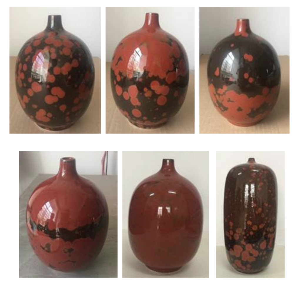 简而言之就是控制作品釉面红花的生长数量、大小、位置,使其产生不同的艺术效果,满足人们不同审美的需求。